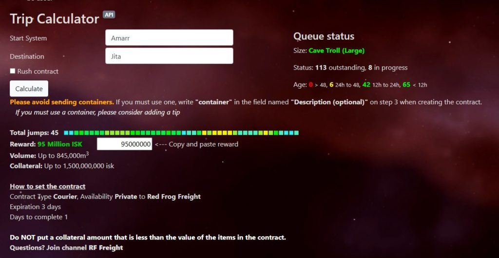 - Reward (Вознаграждение): используйте Trip Calculator на сайте Red Frog Freight для подсчёта награды.